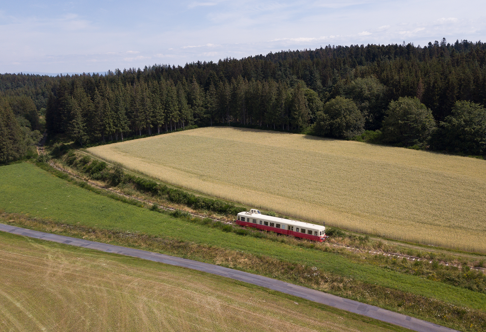 Sur le Chemin de Fer du Haut Forez le 14 Juillet 2020.Suivi aérien du Picasso de Estivareilles à La Chaise Dieu,